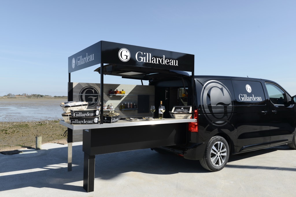 Peugeot Design Lab ekibi, yeni ve daha kişisel bir müşteri deneyimi yaratmak amacıyla Gillardeau için mobil bir midye barı tasarladı. Midyeci ve tezgah, tıpkı sushi bar örneğinde olduğu gibi müşterilerle aynı hizada olup, müşterilerin hazırlanma aşamasını rahatlıkla görmesine imkan tanıyor. 'Meilleur Ouvrier de France' tarafından eğitilen midyeci, Gillardeau® istiridyelerini hazırlarken ihtiyacı olan tüm alet edevat elinin altında olacak şekilde konumlandırılıyor. Özel olarak tasarlanan çalışma alanı sayesinde midyecinin çalışma alanı her daim temiz kalıyor.